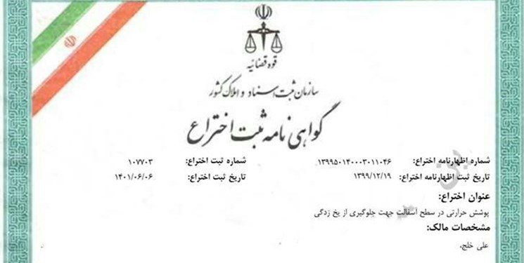 گواهی ثبت یکی از اختراعات آقای مخترع